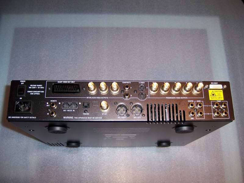 Ни передняя, ни задняя панели ничем не удивили. Выходы стандартные: композит, S-video, компонент, скарт; два цифровых: оптический и коаксиальный, и две пары аналоговых стерео.
